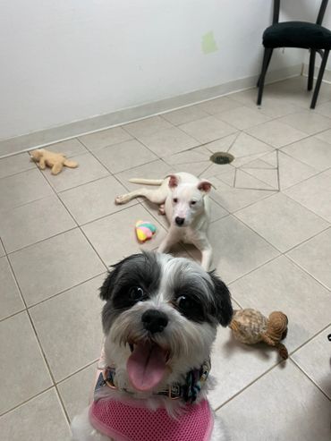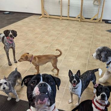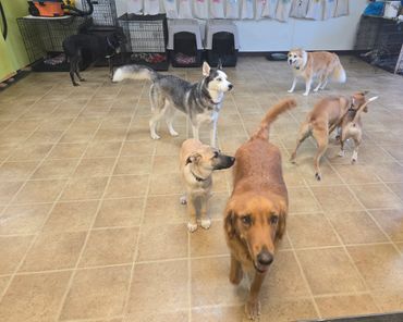 All dogs are caged upon your arrival. Once you leave, we will let your dog sniff everyone. Then, we will start introducing your dogs to other dogs, one at a time.